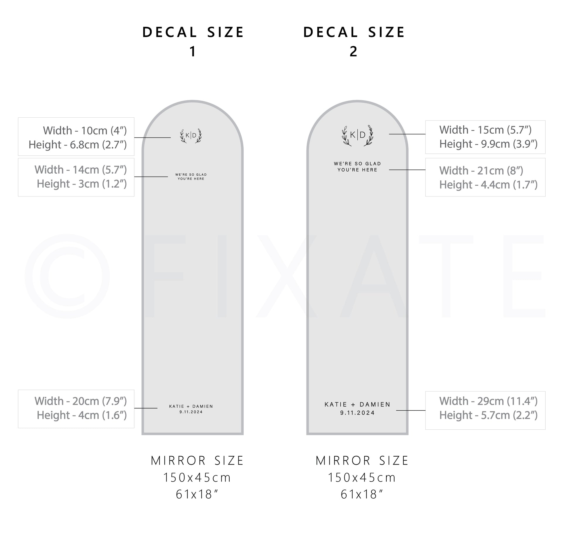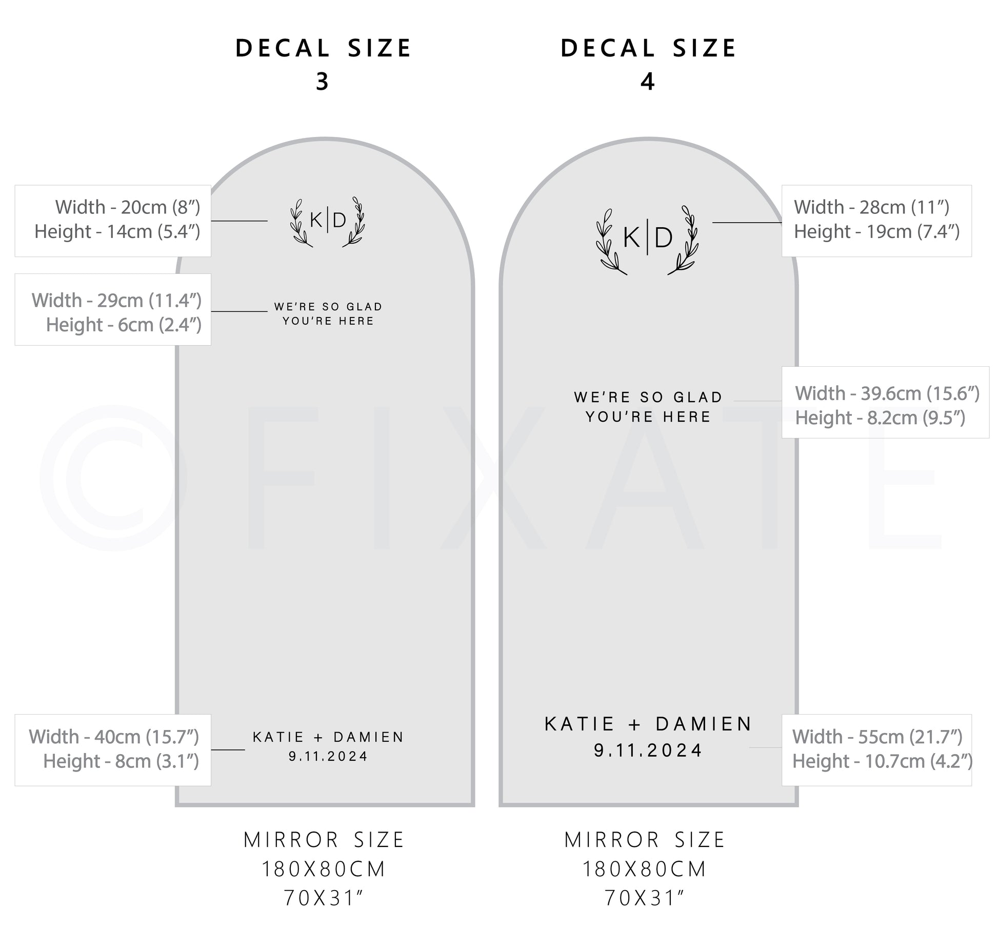 - Easy Application and Removal: Designed for hassle-free application, these decals can be easily applied to mirrors and other smooth surfaces. If needed, they can be removed, making them a convenient and versatile option for your wedding decor.