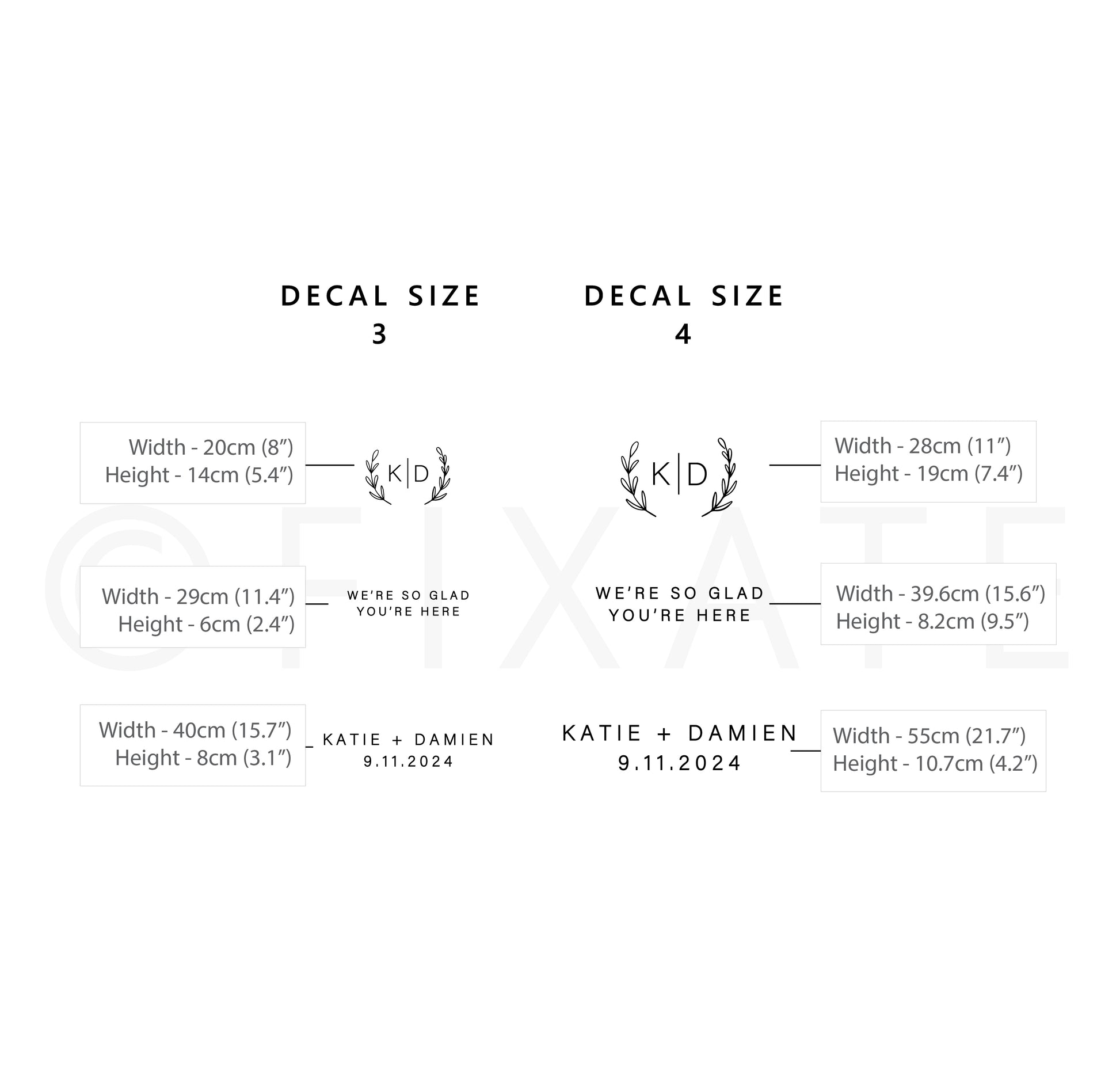 - Personalized Designs: Choose from a variety of design templates and customize them with names, dates, and special messages. Available in classic colors such as black, white, silver, and gold, our decals can be tailored to match your wedding theme perfectly.
